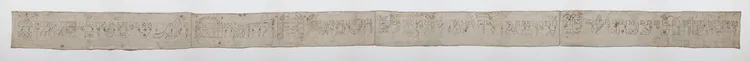 Leinenstreifen, farbig bestickt mit Seidengarnen |